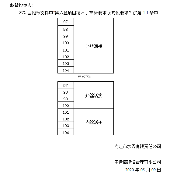 內(nèi)江市水務有限責任公司PPR給水管及管件采購項目更正公告