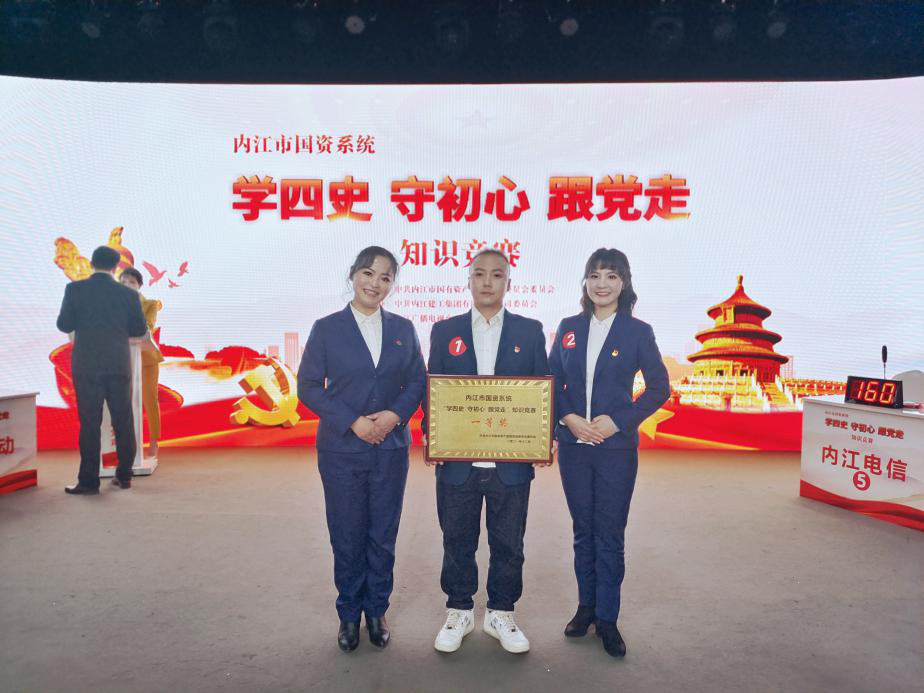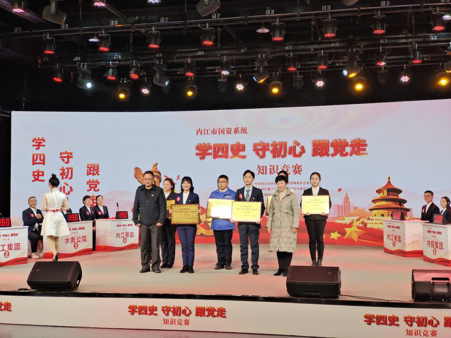 2021年12月28日下午,由中共內(nèi)江市國有資產(chǎn)監(jiān)督管理委員會委員會主辦,中共內(nèi)江建工集團(tuán)有限責(zé)任公司委員會承辦的內(nèi)江市國資系統(tǒng)“學(xué)四史 守初心 跟黨走”知識競賽在內(nèi)江廣播電視臺演播大廳舉行。來自市級各企業(yè)的8支隊伍24名選手參賽,我司選派的劉梅、袁琳、熊瑞凱3名同志代表參加了此次競賽。