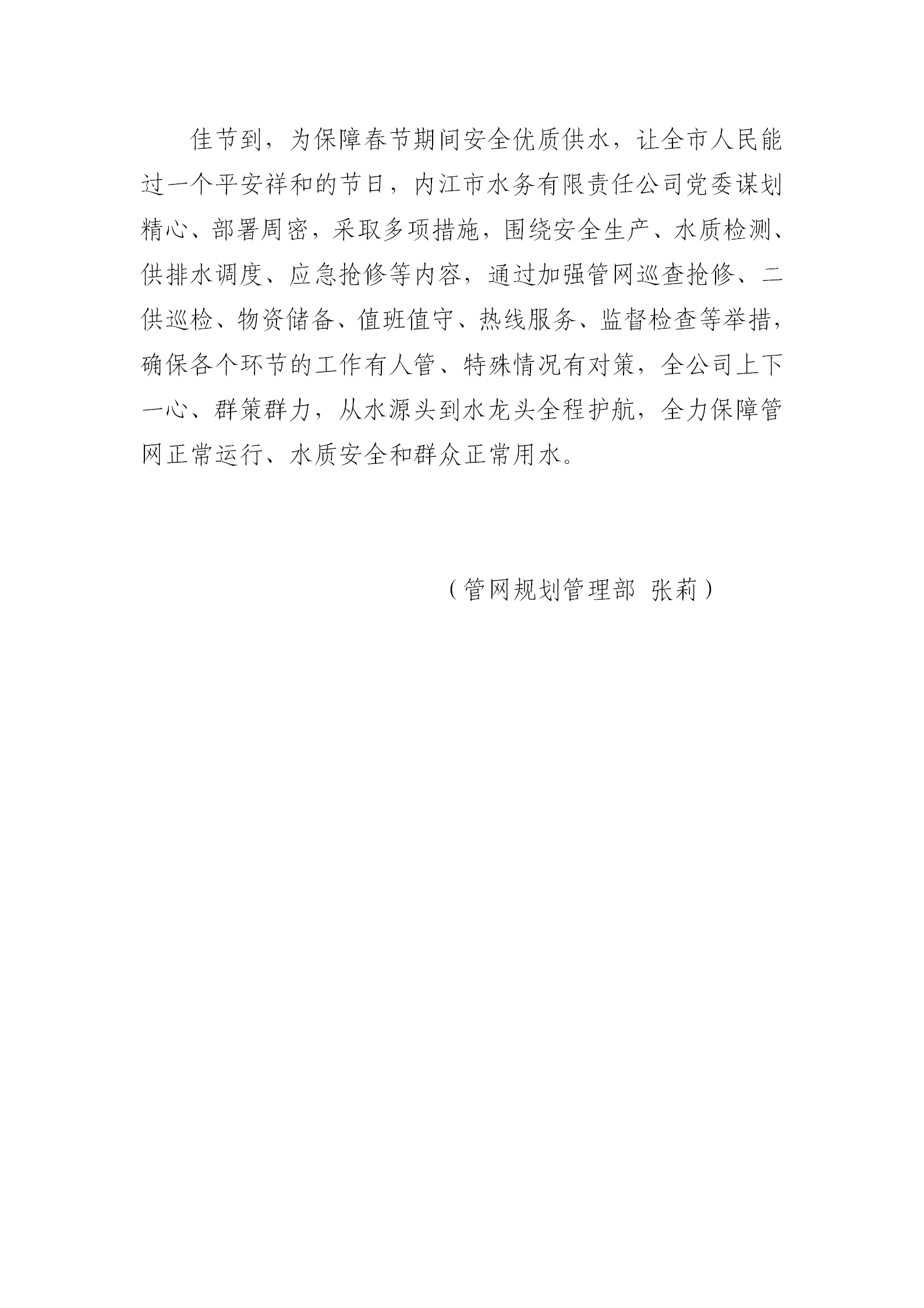 佳節(jié)到 從水源頭到水龍頭全程護(hù)航