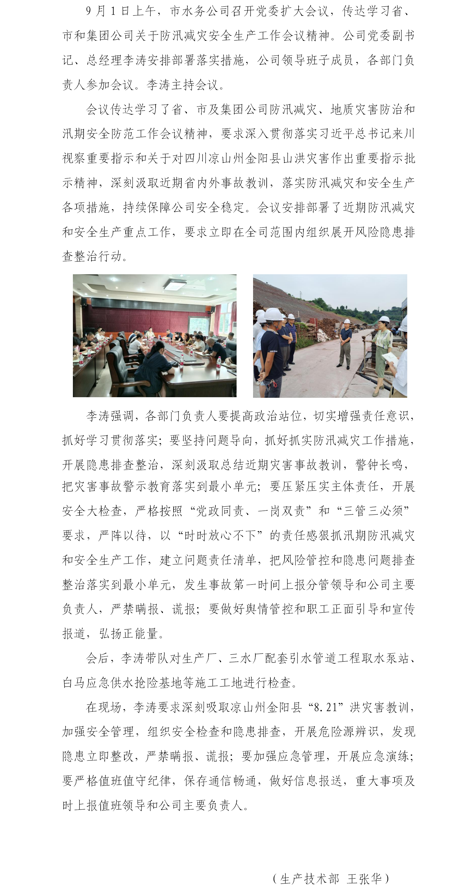 內(nèi)江市水務(wù)有限責(zé)任公司召開防汛減災(zāi)安全生產(chǎn)工作專題會(huì)、開展安全大檢查