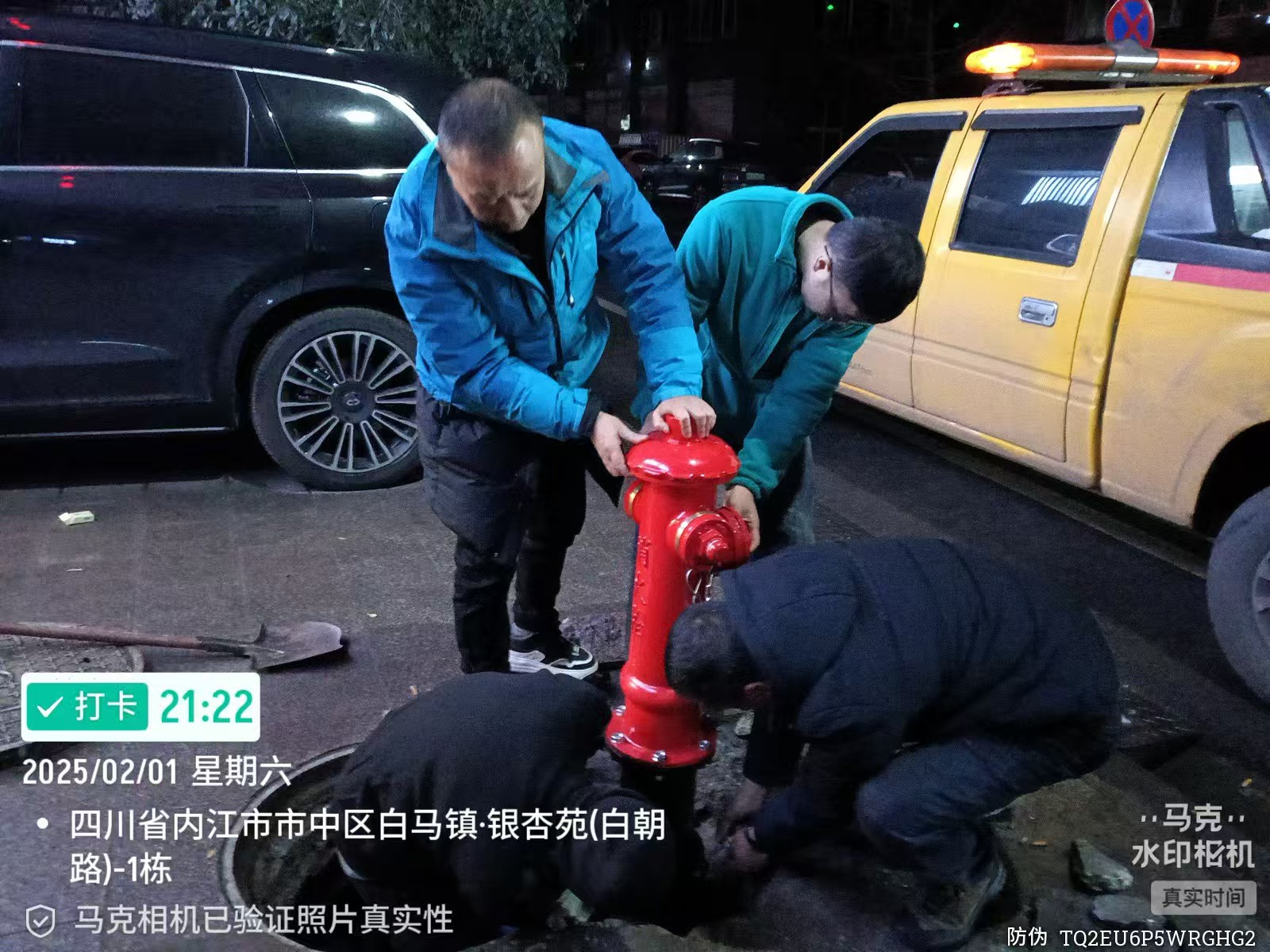 2月1日19時,一個搶修電話打破了部門值班室的寧靜:“你好,請問是水務(wù)公司嗎?白馬老政府一處消火栓被車輛撞斷,大量自來水噴涌而出!”接到任務(wù)后,鄉(xiāng)鎮(zhèn)供水部迅速啟動應(yīng)急預(yù)案,搶修隊伍第一時間趕赴現(xiàn)場。